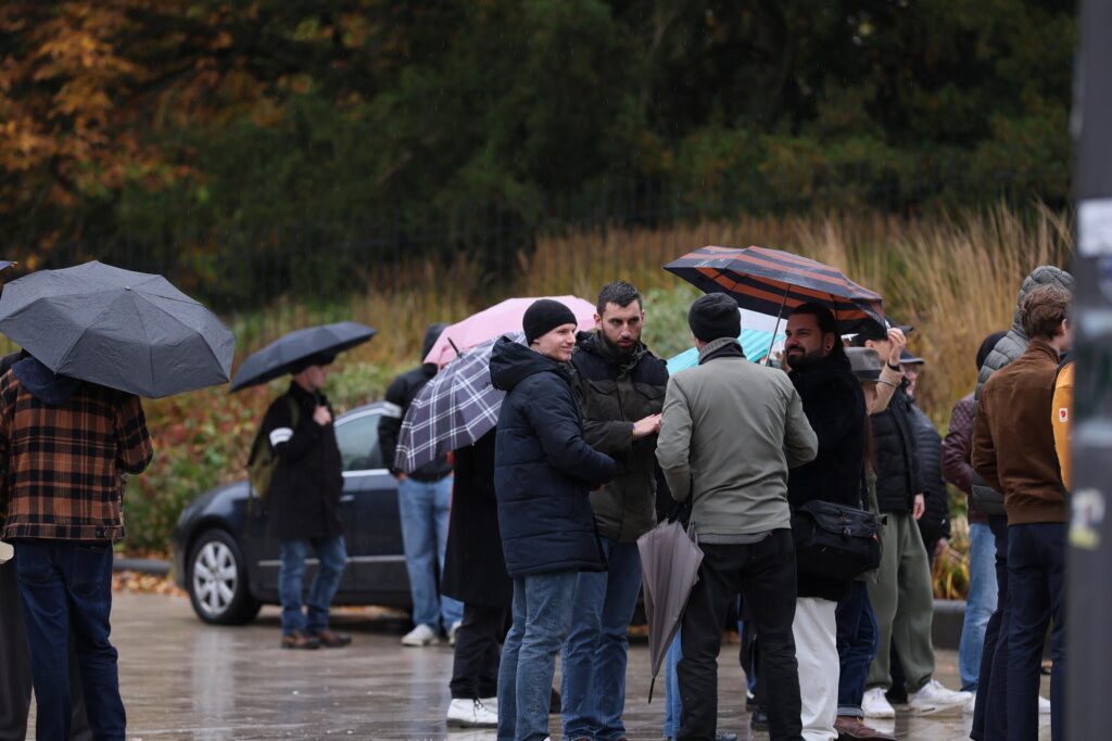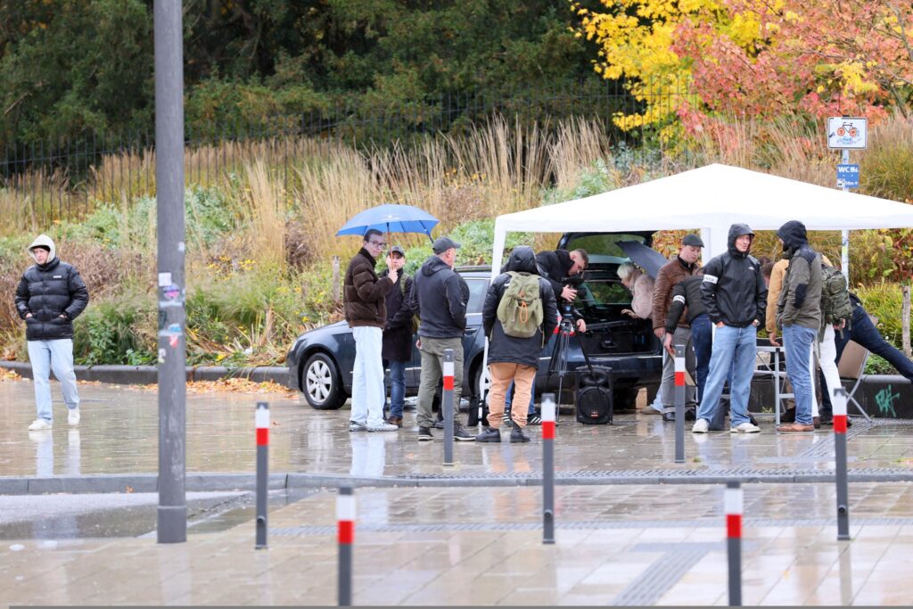 In der Mitte im blauen Parka “jan.offiziel__” vom “Heimatecho”, im Hintergrund steht Amir Imeri.|Foto von Pixelarchiv