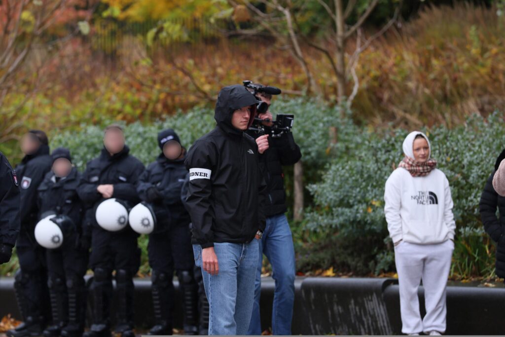 Zweiweise hatte auch Yannick Luca Zilian, bekannt von Aktionen der aufgelösten Jungen Alternative Schleswig-Holstein, eine Order*innen-Binde.